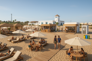 VisionS futuristeS de la plage Tikanne et la plage centrale "Al Wikaya", imaginées par Abdeslam Ch'ouiakh.